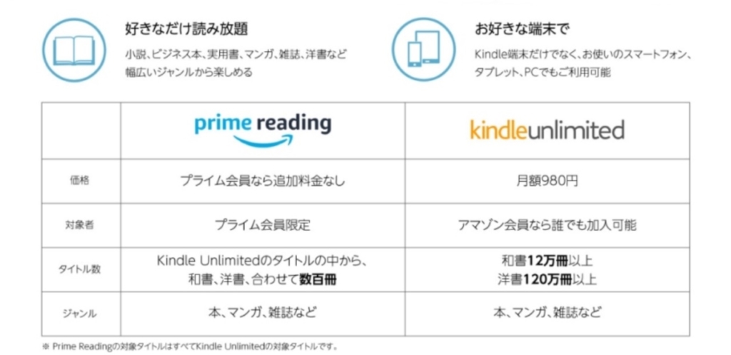 「Prime Reading」と「Kindle Unlimited」の違いについて